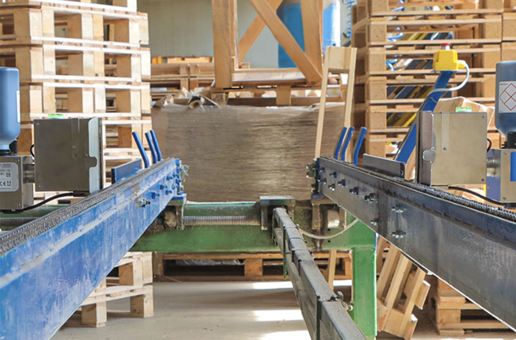 EBS-2600自动喷码机可以集成到木托盘生产线后端中,非常适合自动化生产线,生产后自动进入标识阶段,无需安排人员再单独进行标识。可以大量节省托盘整体生产时间。