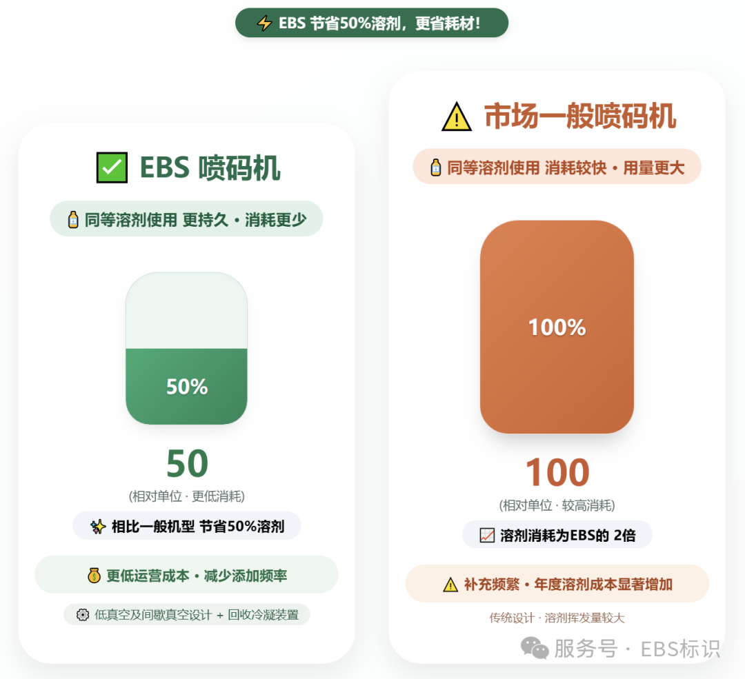 面对波动的能源耗材价格,EBS-6900小字符喷码机这种省耗节能的设备,从根本上“省下来”,不失为一种更稳妥的选择!